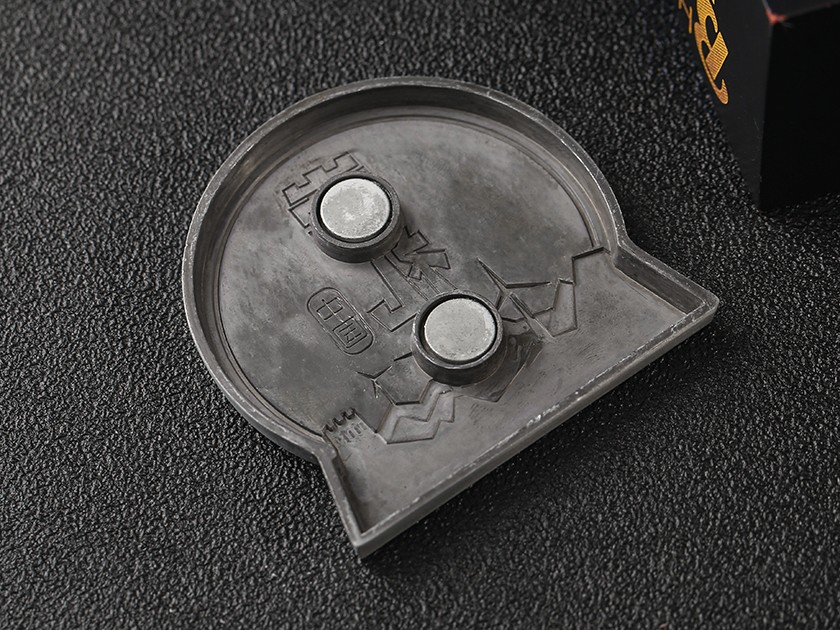 【制作工藝】:壓鑄 【上色工藝】:烤漆+金屬本色 【電鍍顏色】:槍黑拉絲 【背面工藝】:本色凹凸 【產(chǎn)品配件】:磁鐵扣